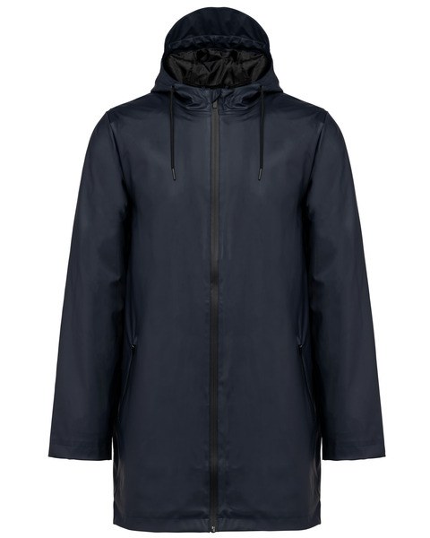 Waterproof reverse zip fastening to the top of the neck, with a zip cover at the top.2 side pockets with light waterproof fastening and hidden zip.
