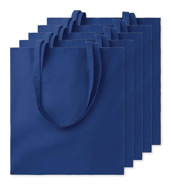 Pachet de 5 GiftRetail MO9268 - Albastru - Geantă de cumpărături din bumbac COTTONEL COLOUR Eco-Friendly 140gsm