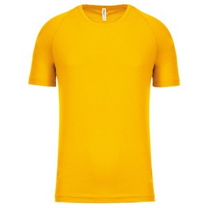 Tricou sport pentru bărbați cu mânecă scurtă din material 100% poliester cu uscare rapidă, conceput pentru activități de înaltă performanță și personalizare în vrac. Acest articol ușor este creat pentru sportivi și persoane active care au nevoie de gestionarea umidității în timpul antrenamentelor intense. Mânecile raglan cu cusătură de acoperire asigură o mobilitate maximă și previn frecarea, în timp ce gâtul întărit și finisajul cu ac dublu oferă durabilitatea necesară pentru utilizări repetate. Fie că sunteți în căutarea unei baze de performanță simple pentru antrenamentul zilnic sau a unei suprafețe de înaltă calitate pentru brandingul echipei, acest tricou oferă rezultate. Suprafața netedă din poliester este excelentă pentru serigrafie și DTF, făcându-l preferatul cluburilor sportive și al programelor de wellness corporative. Disponibil pentru comenzi angro și în vrac, acesta oferă un aspect profesional la un preț accesibil. Materialul tehnic se usucă rapid, menținând purtătorul răcoros.